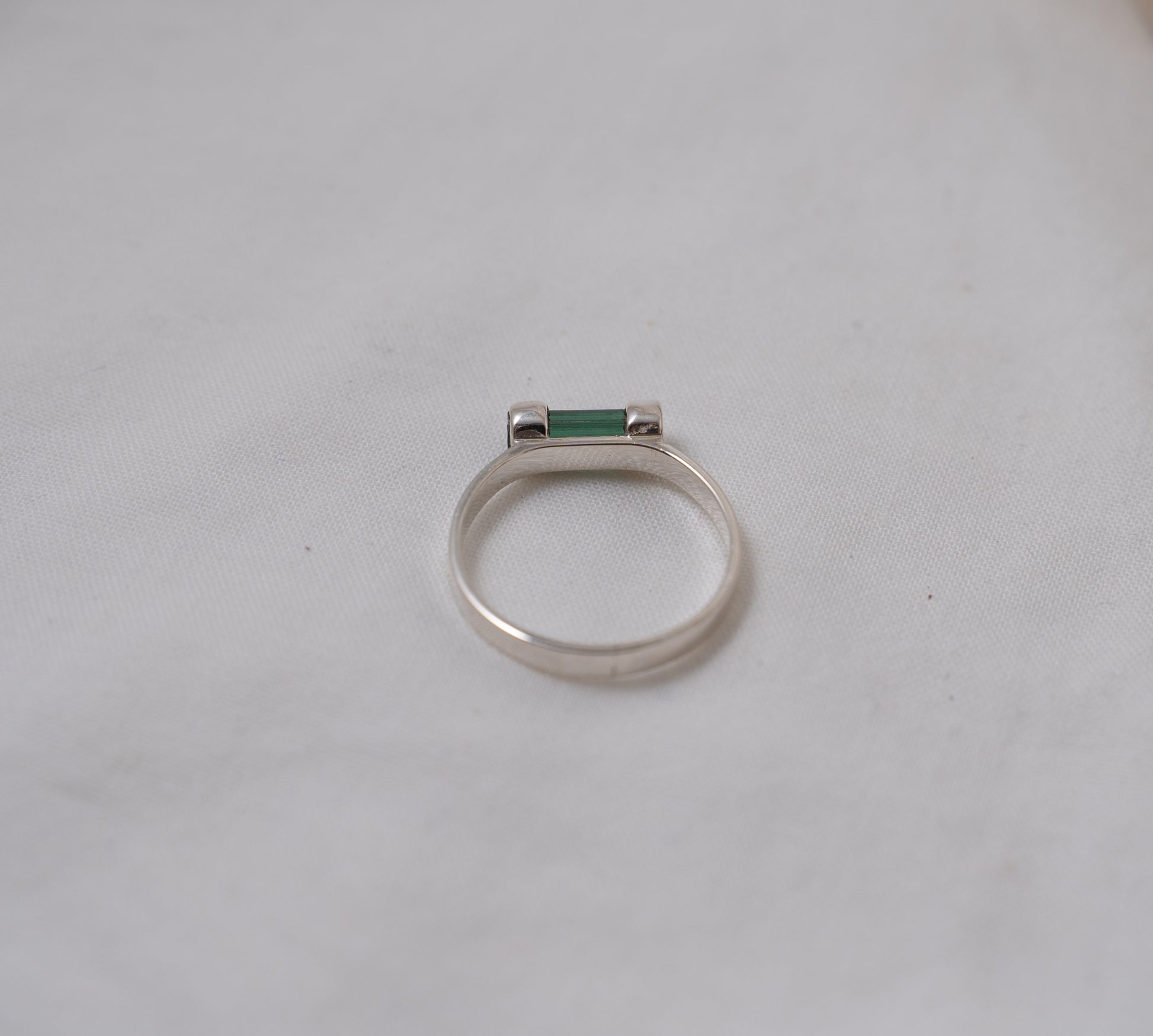 A lovely handcrafted ring set with a raw green tourmaline These long green tourmaline crystals are naturally occurring and make beautiful rings.
