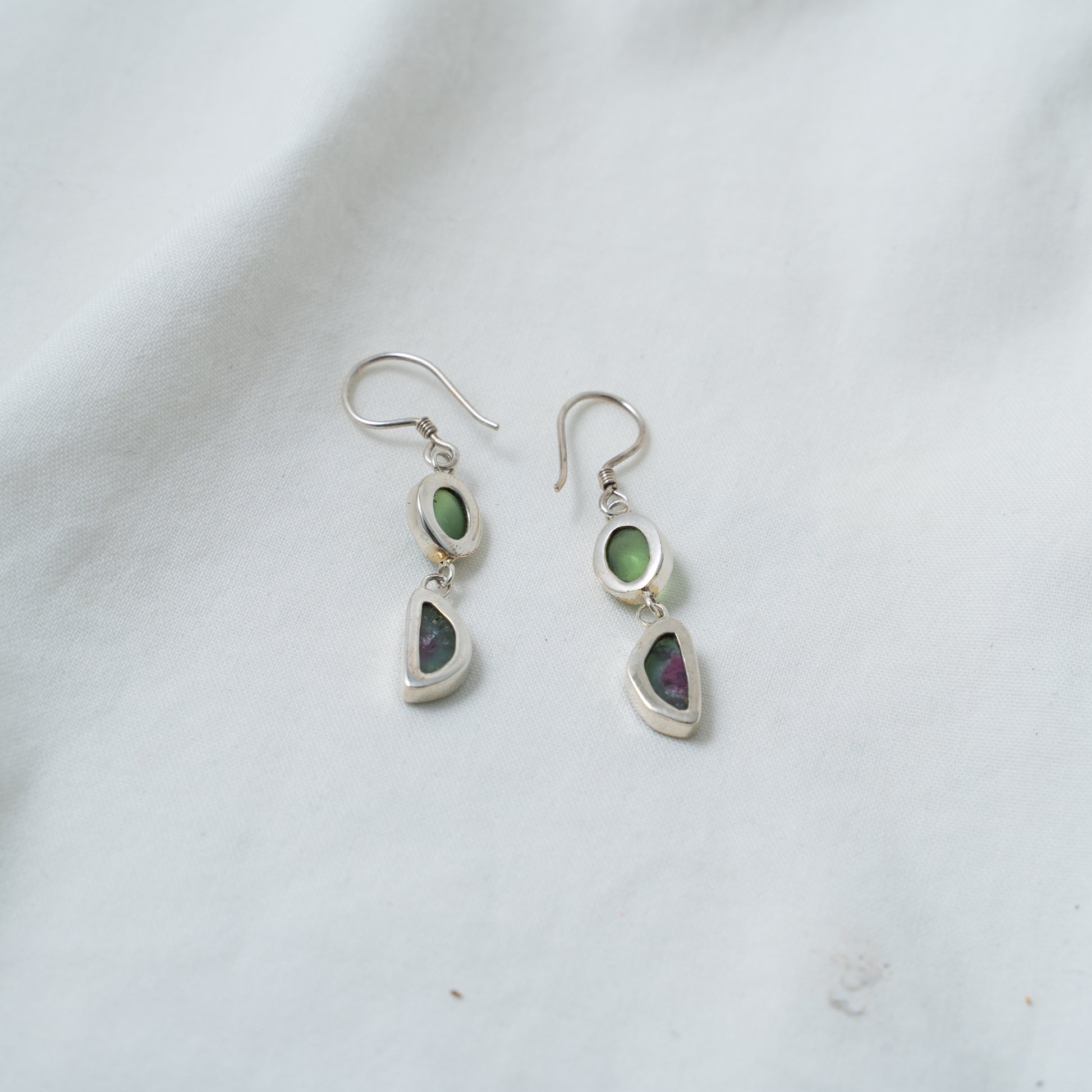 Silver, handcrafted, dual gemstone, medium, dangle earrings.