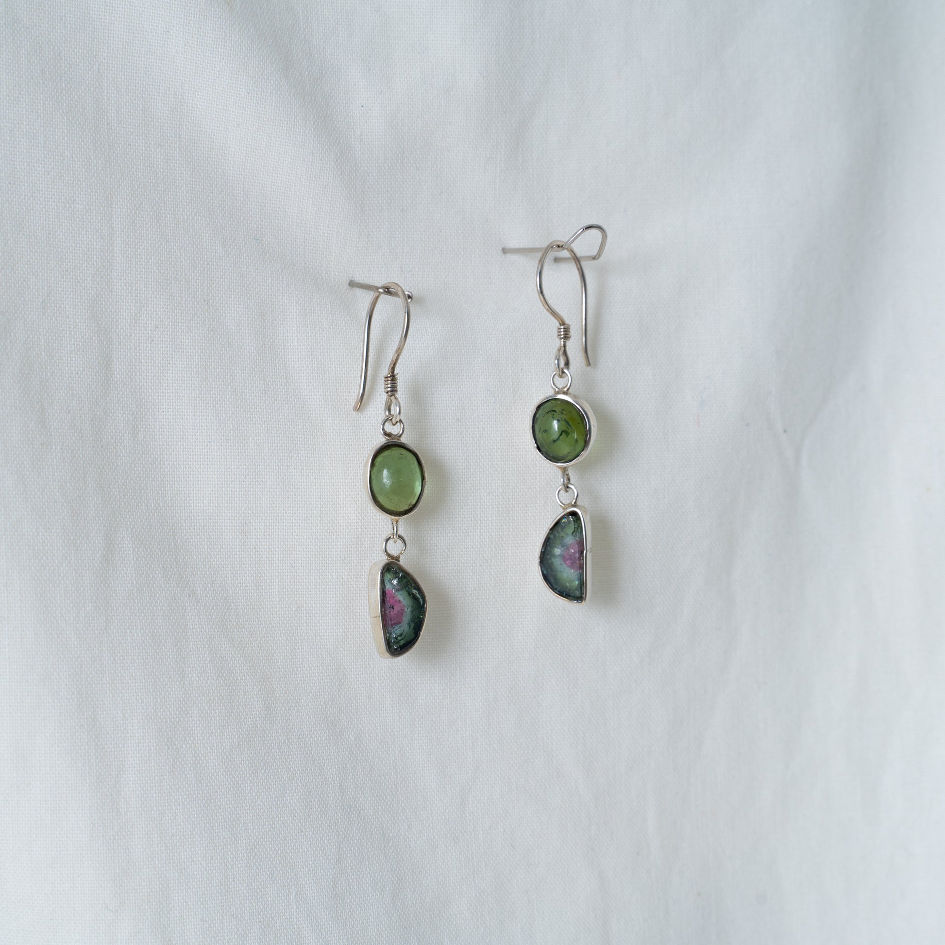 Ear hook design, with both earrings entire length measuring at 4.5cm (top the ear hook to the bottom of the semi-circle watermelon tourmaline.