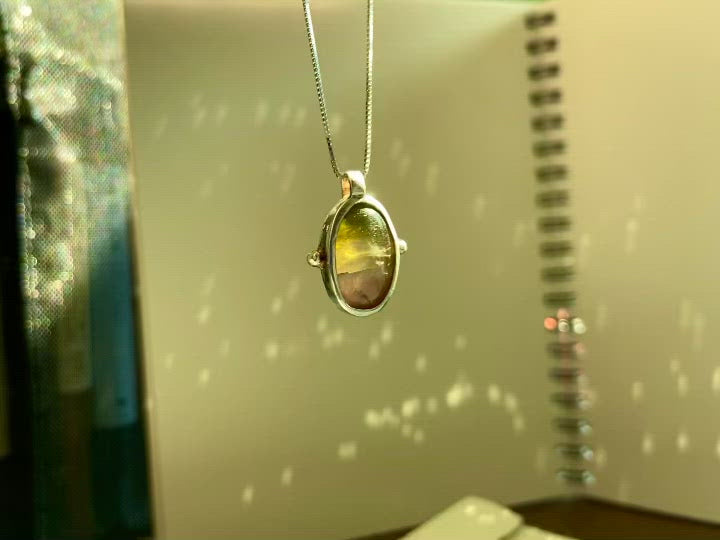 Tri color tourmaline silver pendant entirely handcrafted by Anica Lin in her studio.