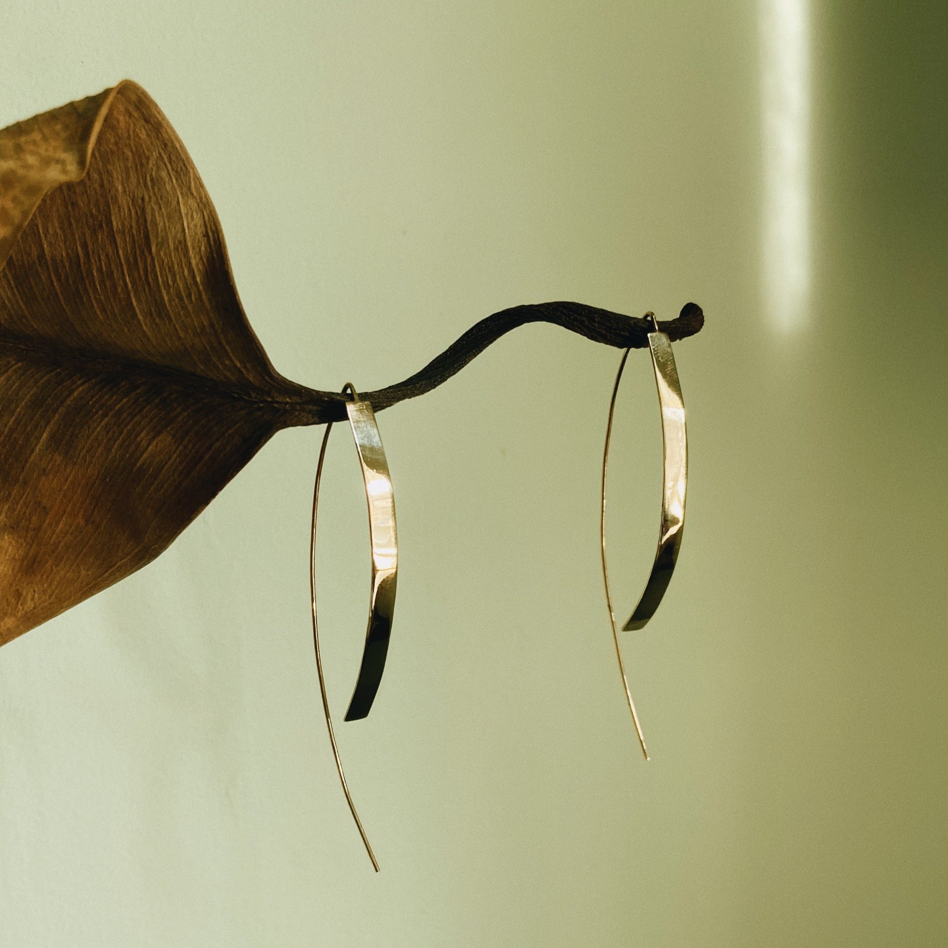 14K Solid Yellow gold, long dangle earrings entirely handcrafted by Anica Lin in her studio.