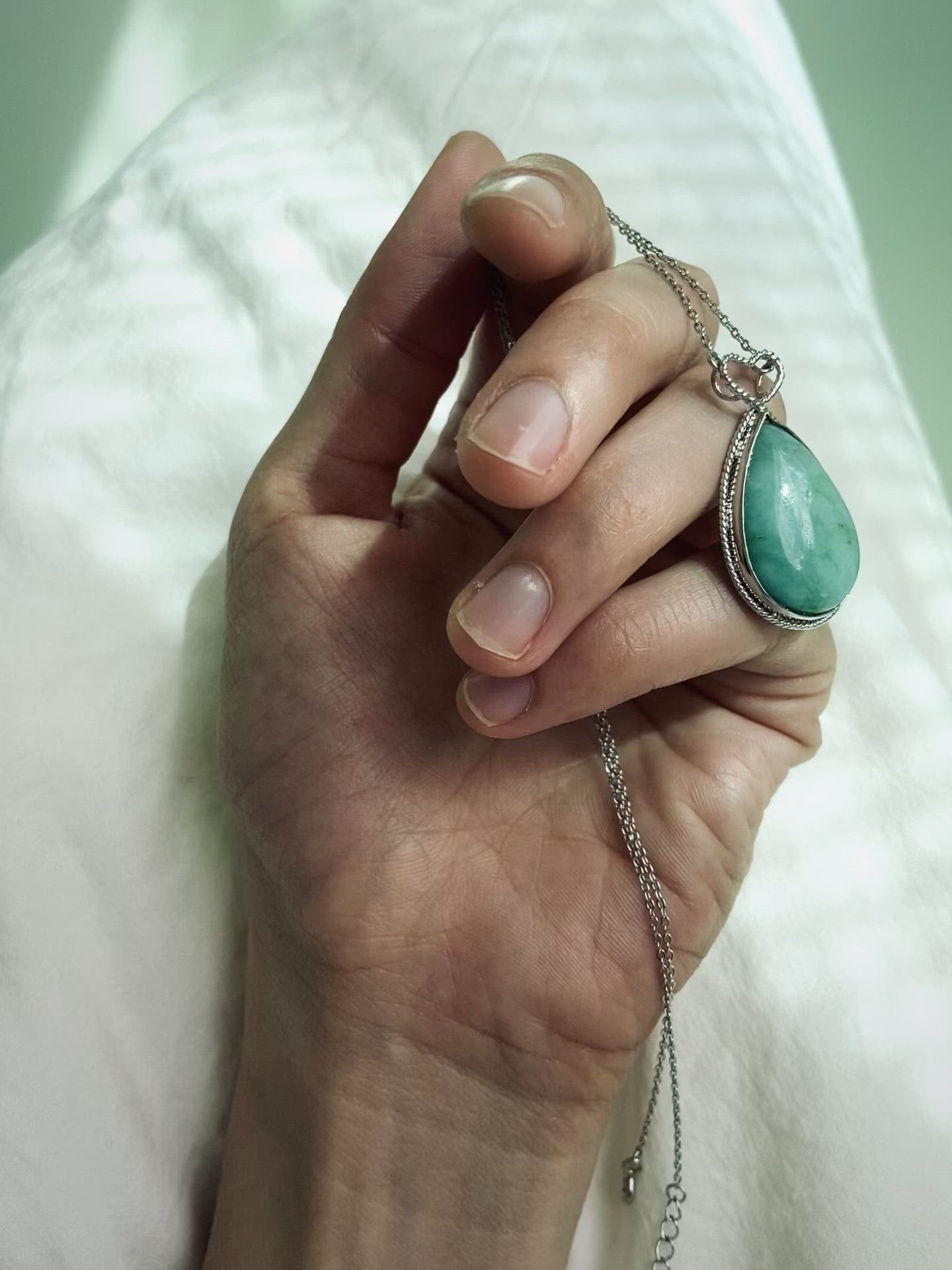 Materials: turquoise, teardrop shaped, cabochon set in 925 sterling silver.