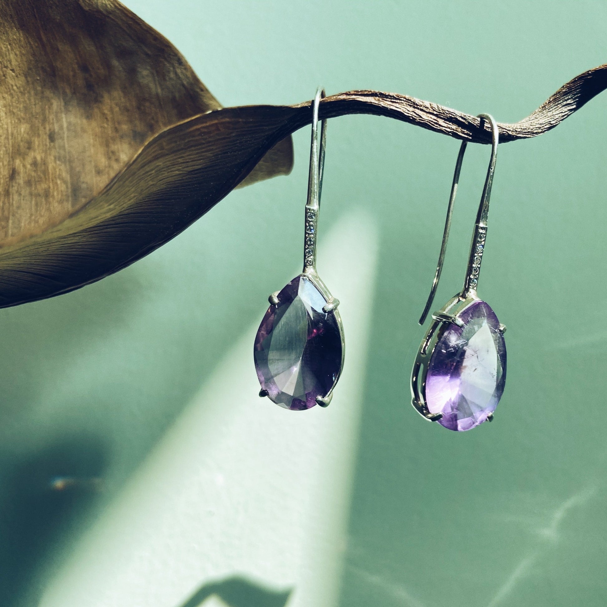 gemstone: faceted teardrop amethyst.