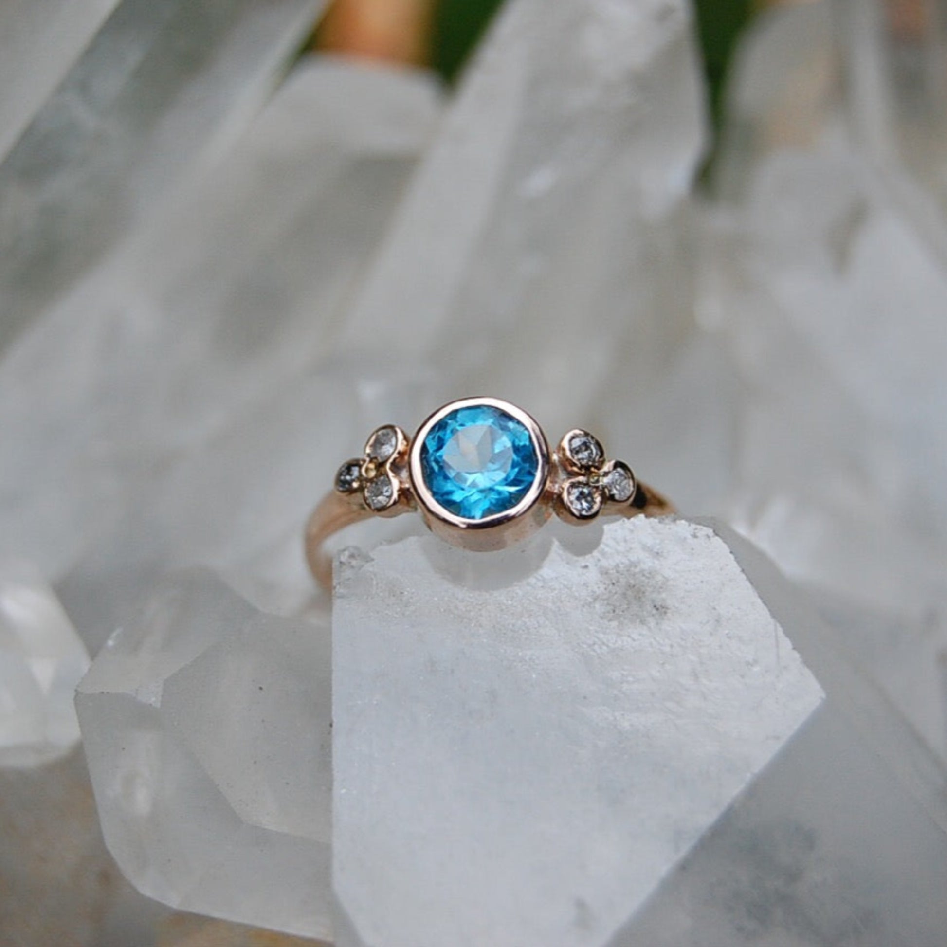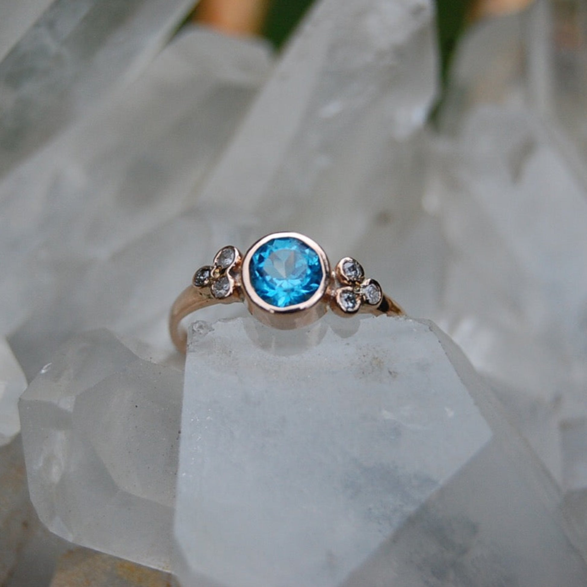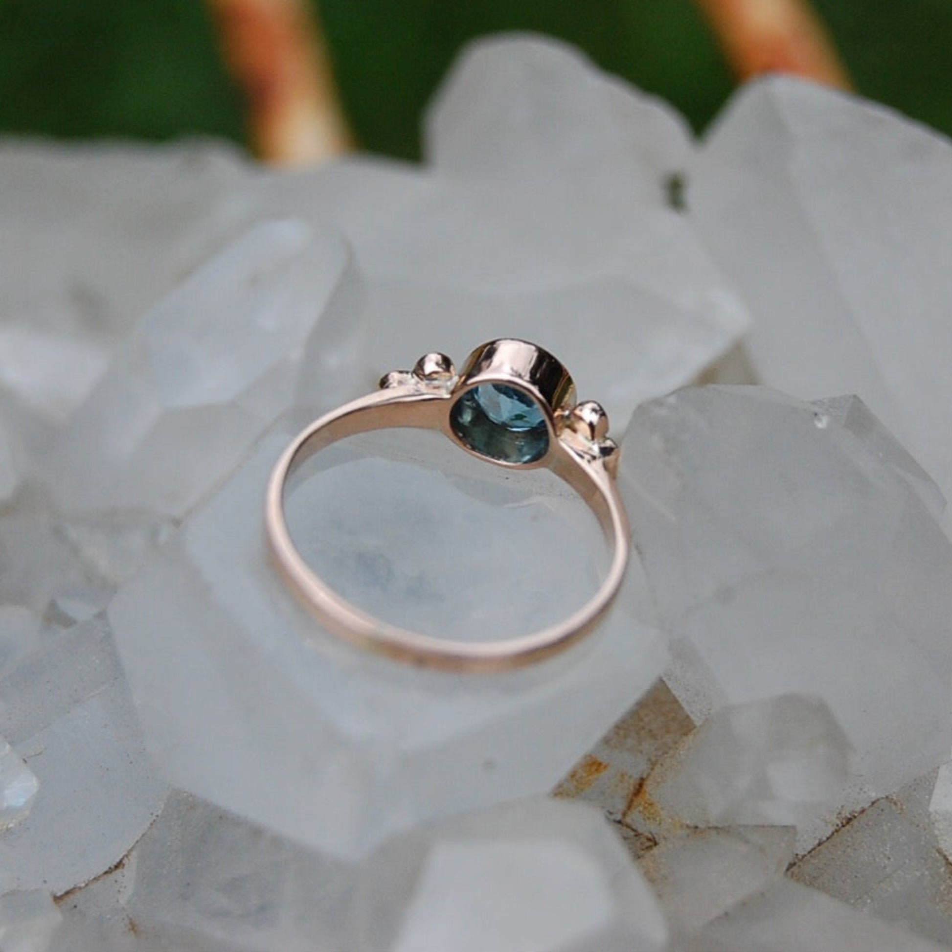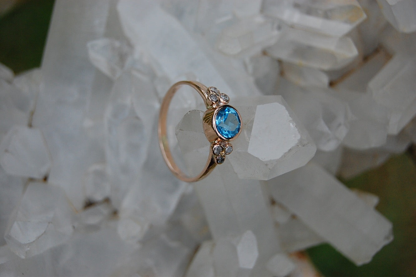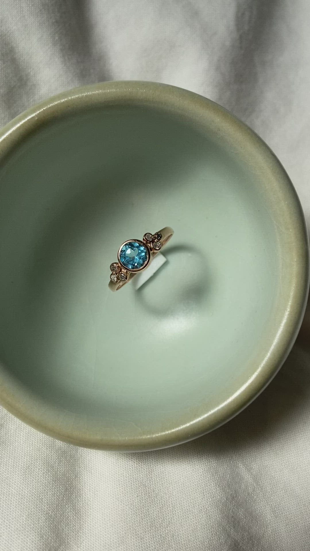 Aquamarine and Diamond gold ring entirely handcrafted by Anica Lin in her studio.