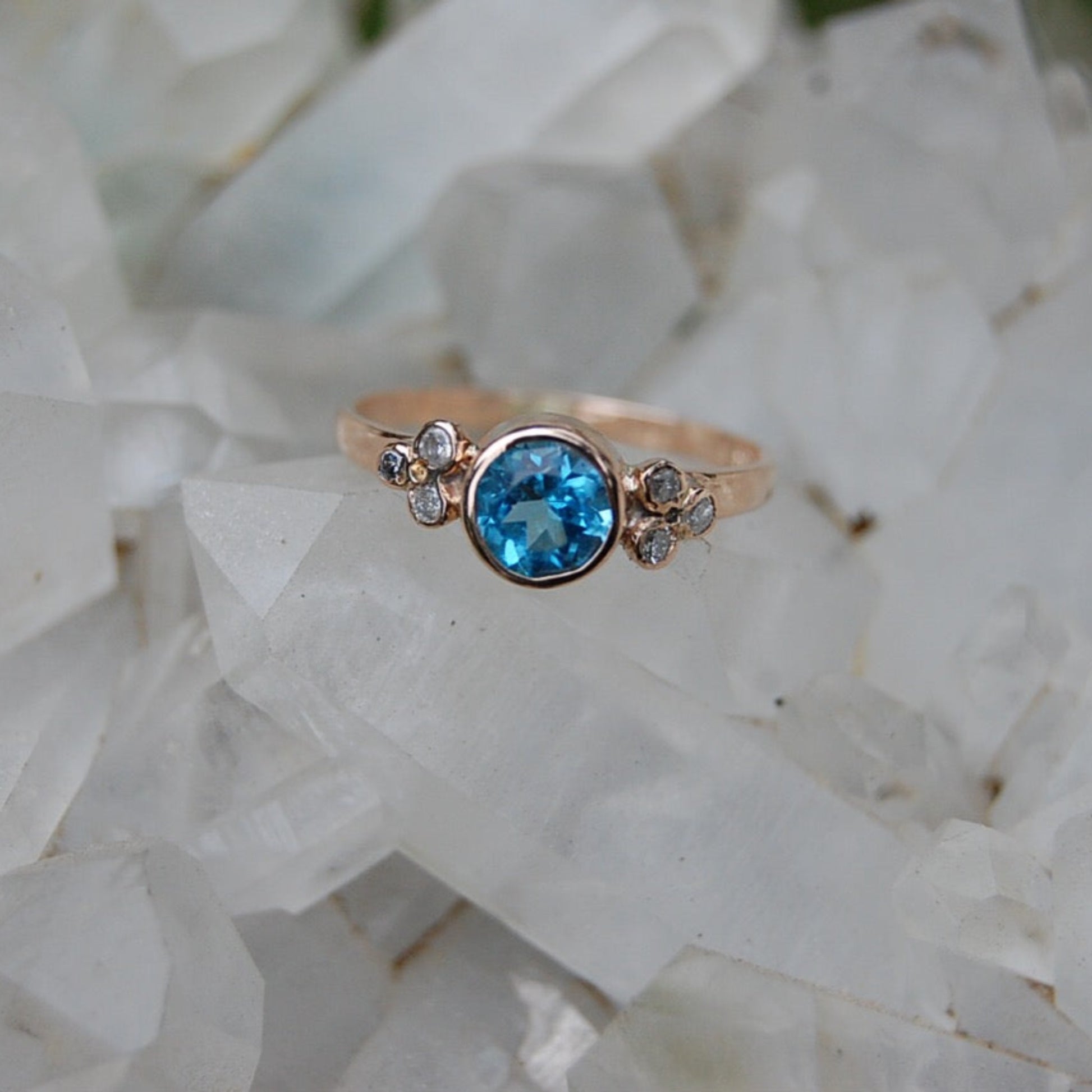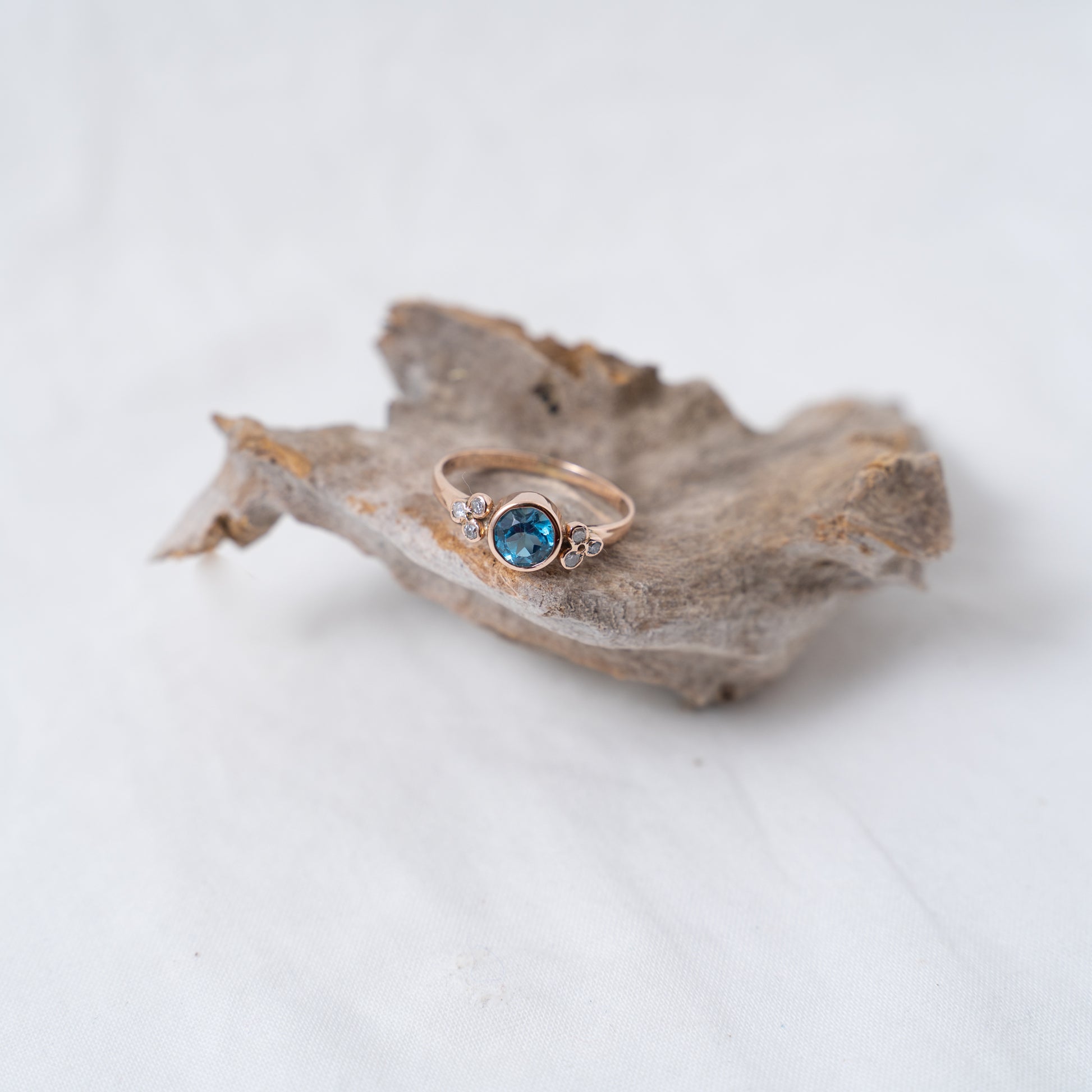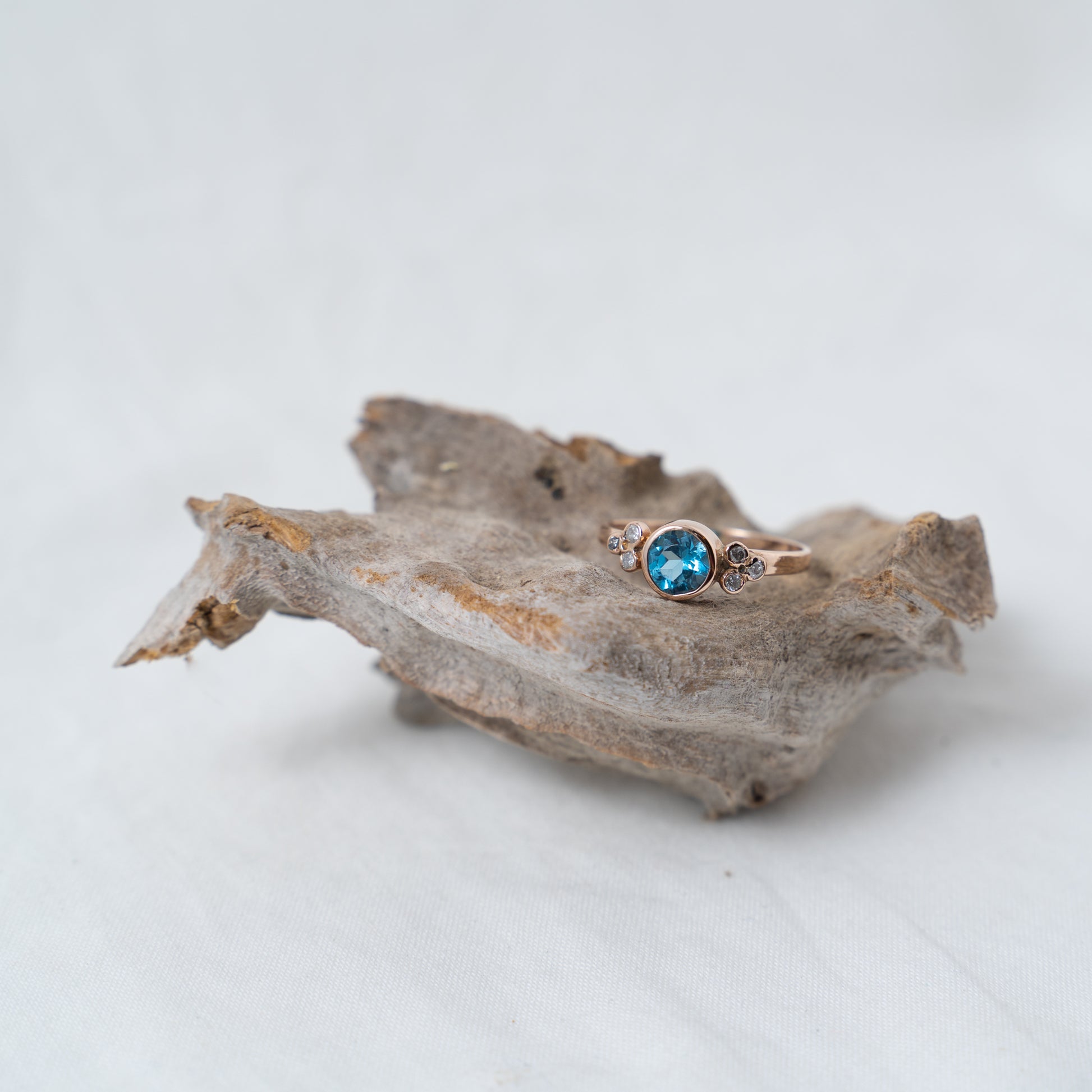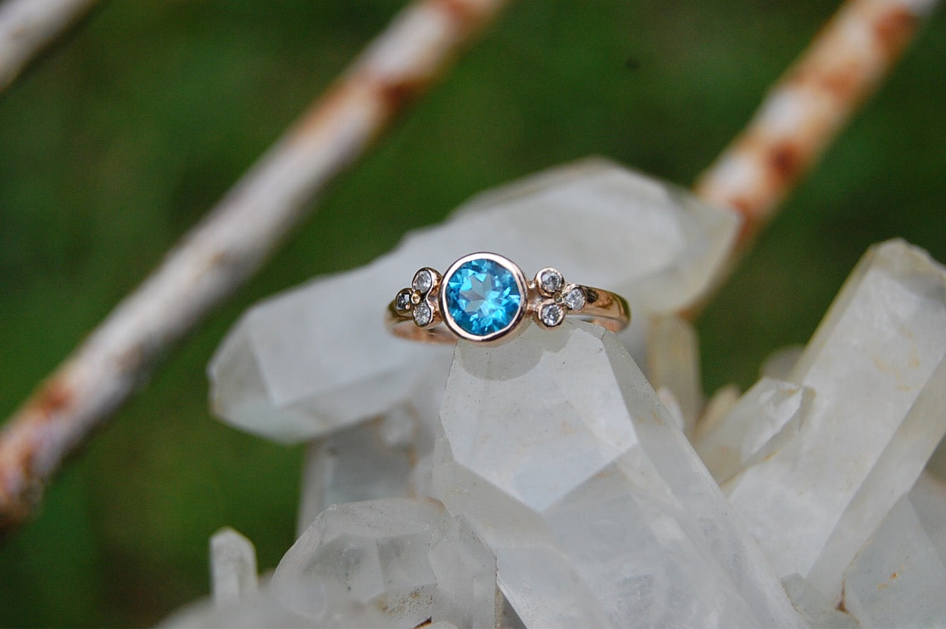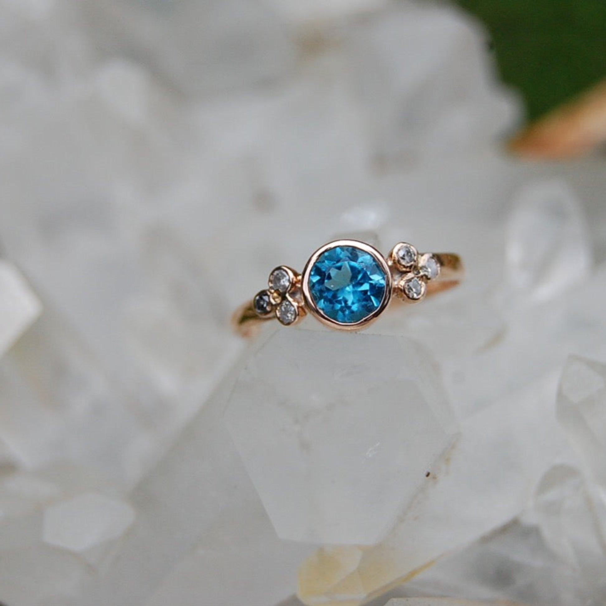 Aquamarine and Diamond gold ring entirely handcrafted by Anica Lin in her studio.
