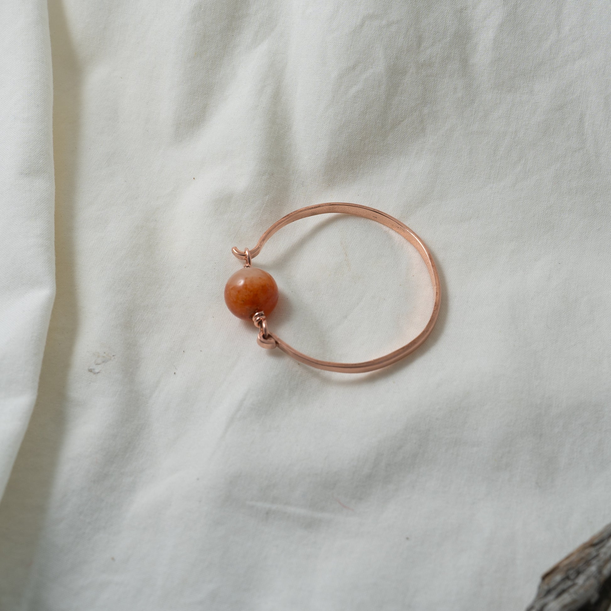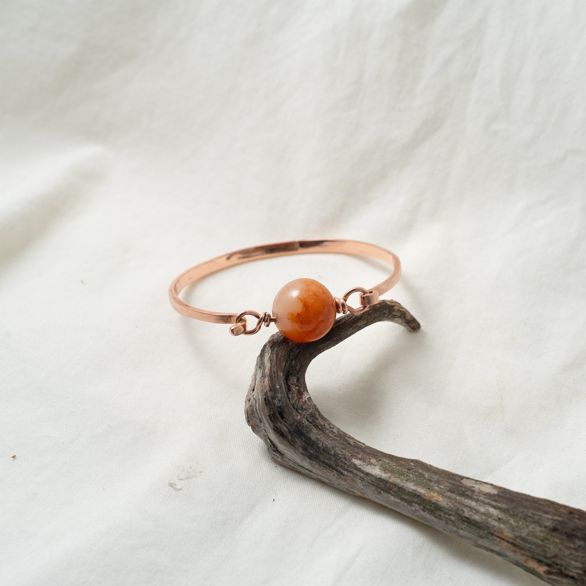 Handcrafted copper bangle set with a magnificent, warm, dual, warm-colored Jade gemstone.
