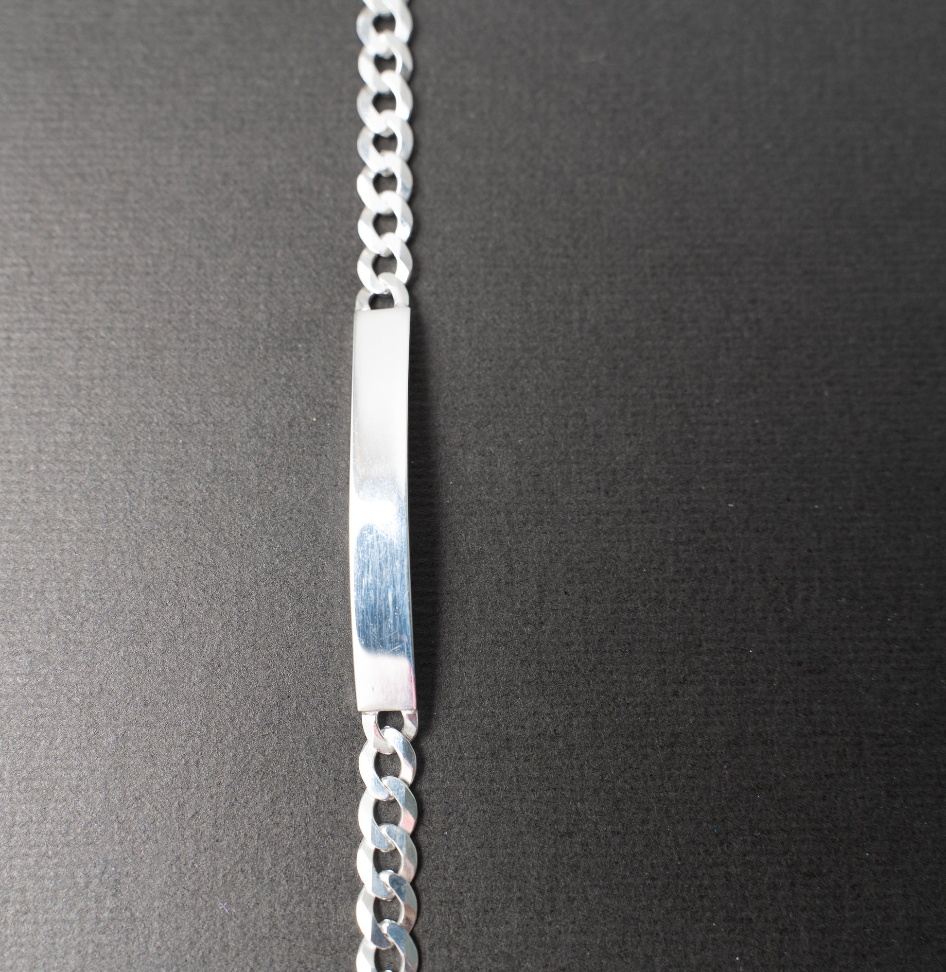 This engravable bracelet is in sterling silver.