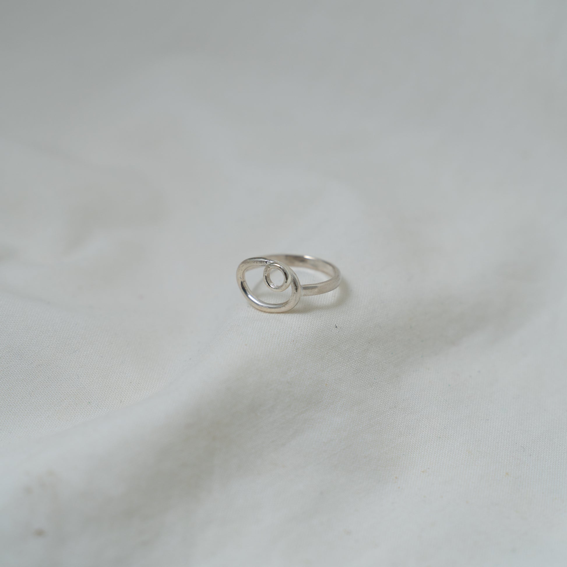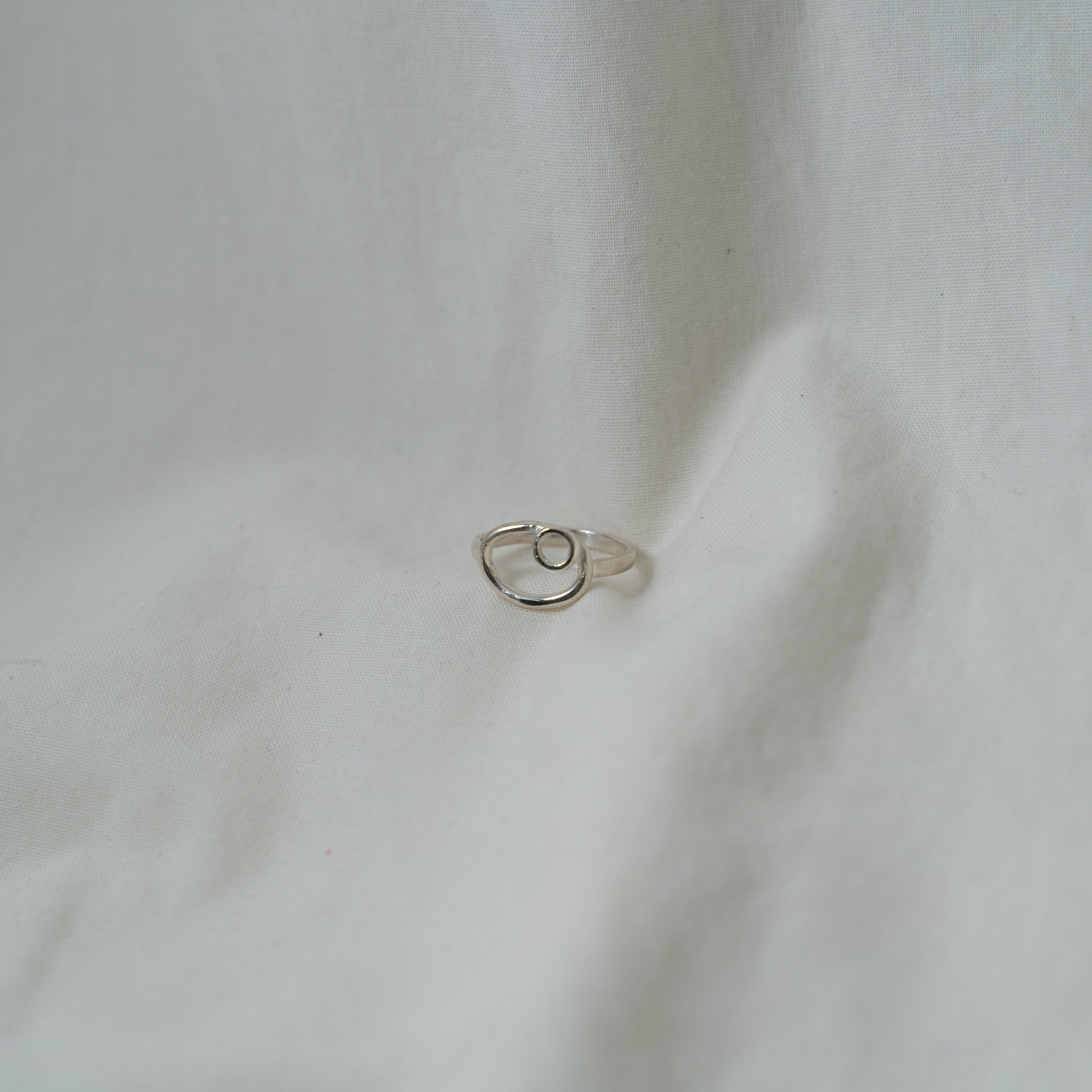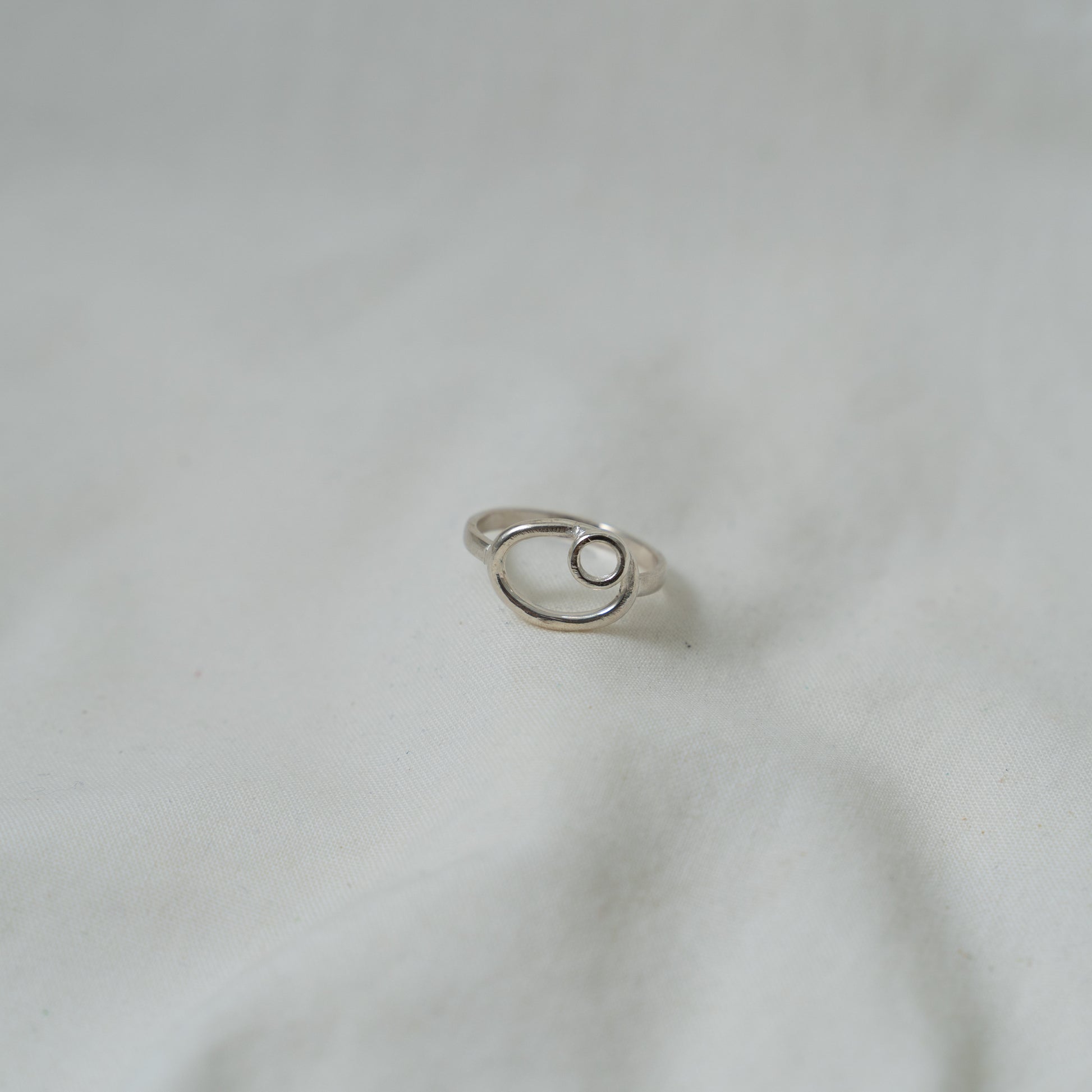 Dual oval and circle, small silver ring