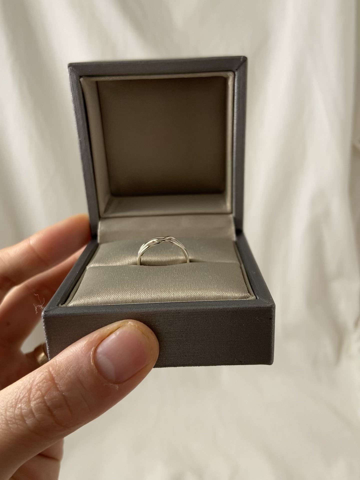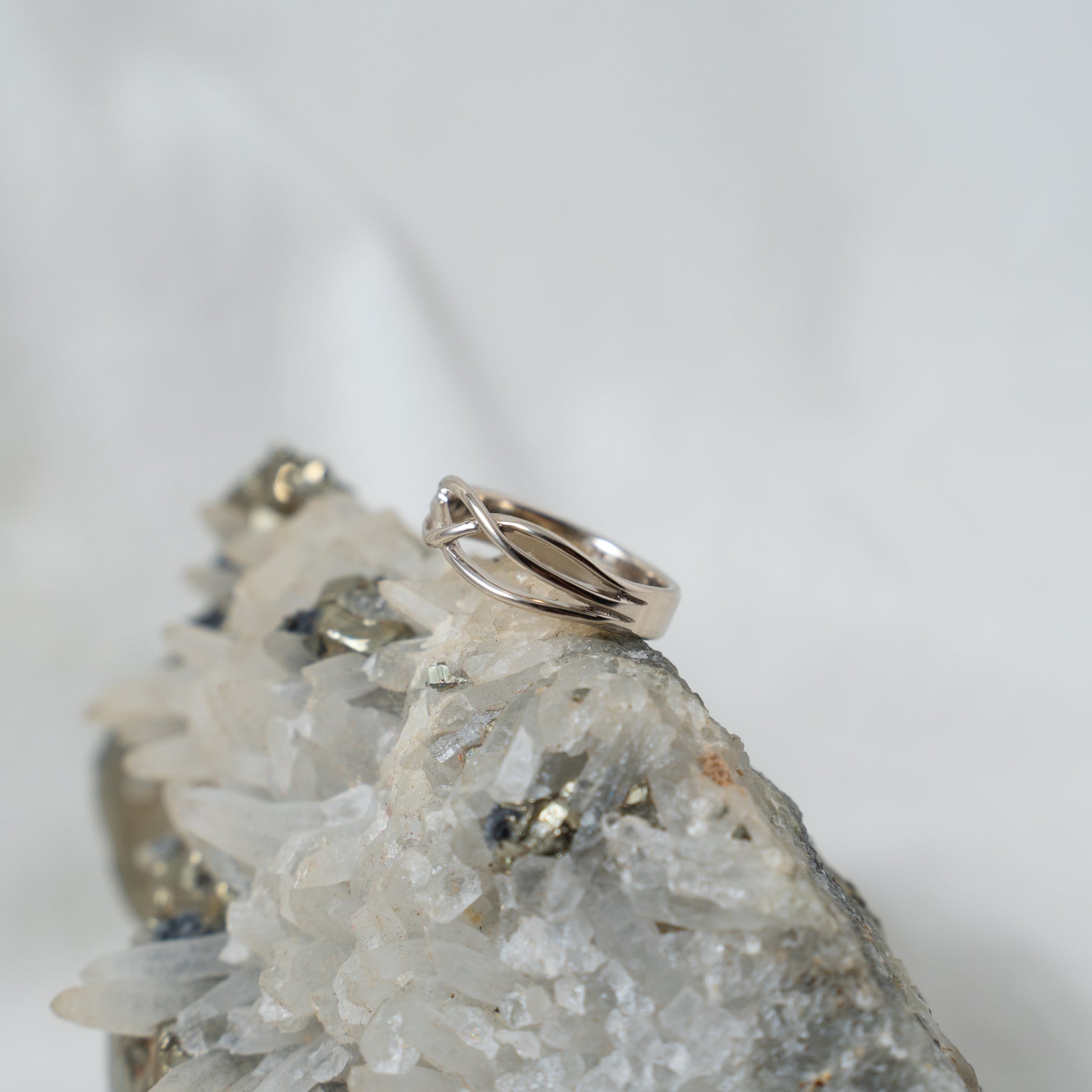 Eliza - 14k white gold, wedding band, braided, asymmetrical look and polished. Size 4 US
