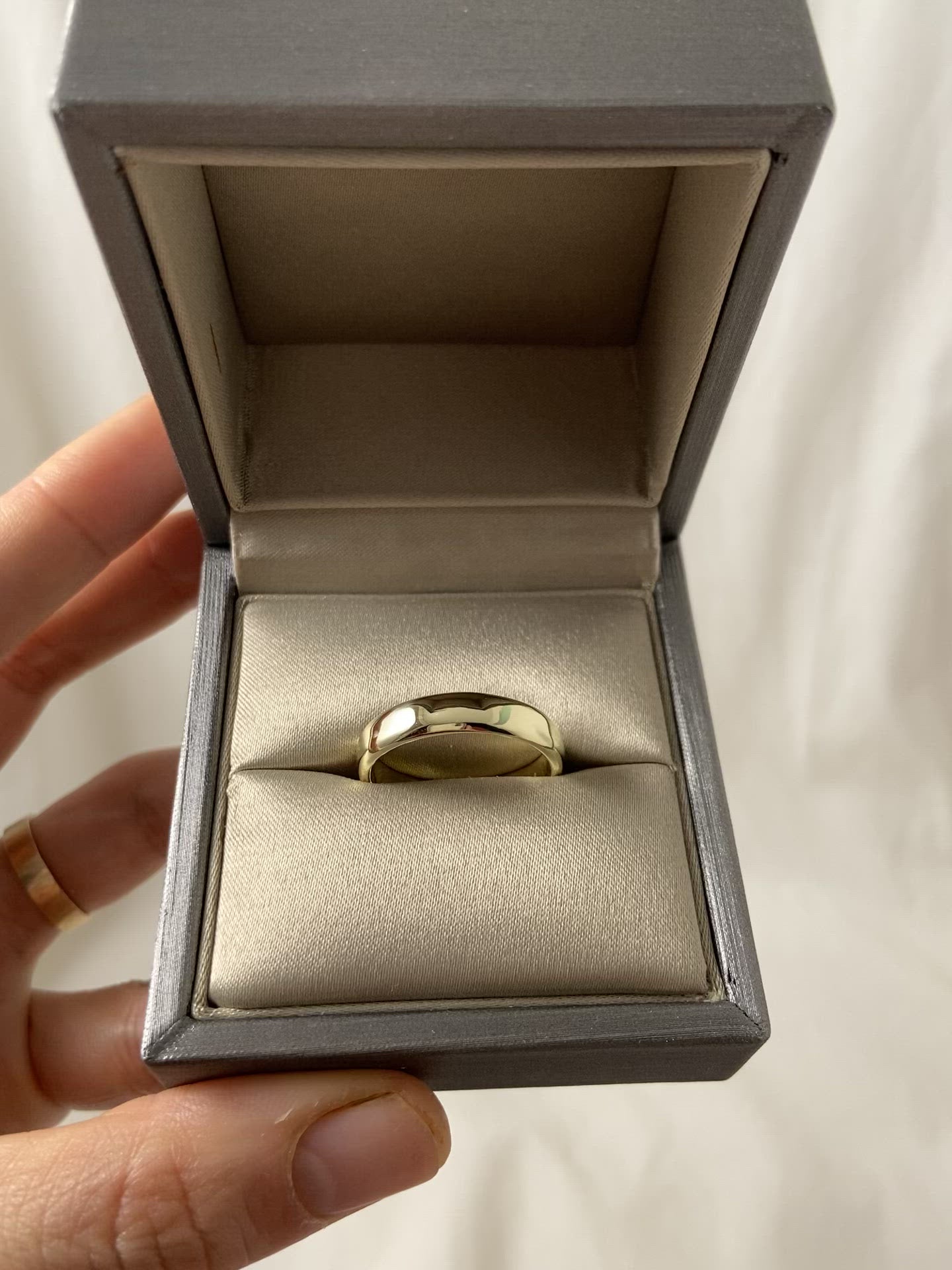 Mike - 14k yellow gold, wedding band and polished. Size 10 US