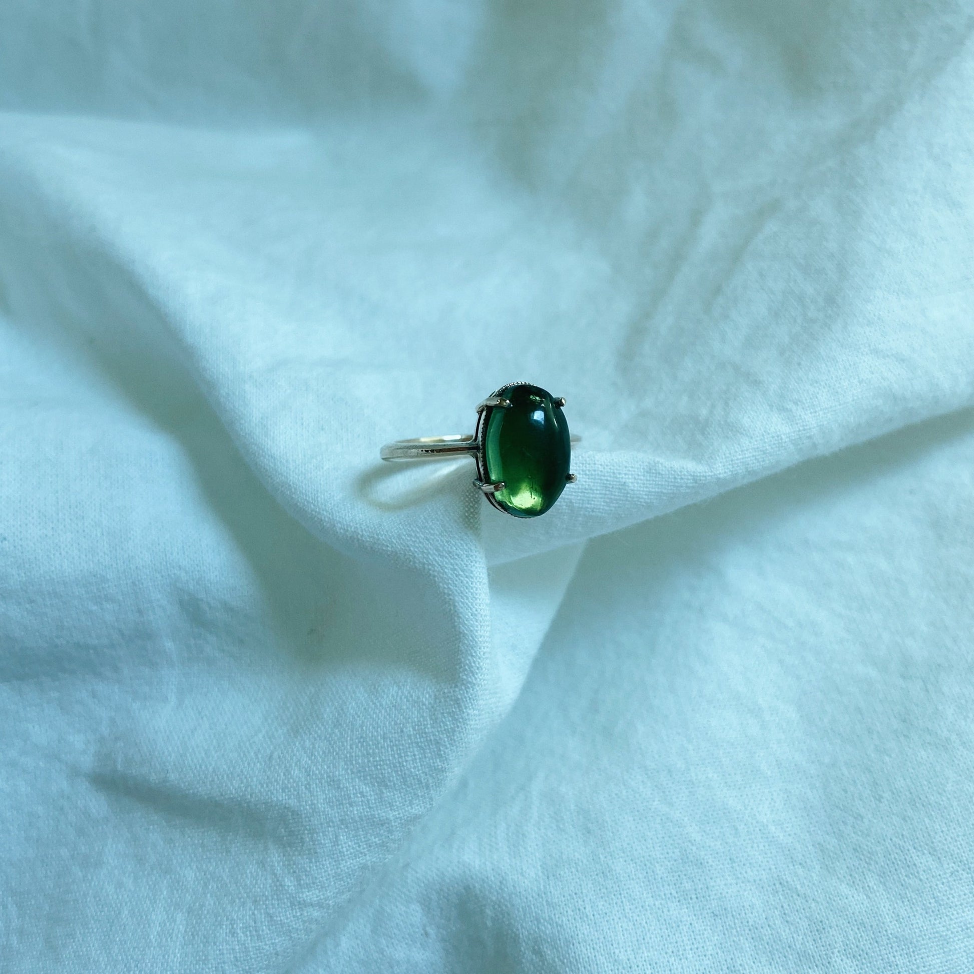 Materials: Oval shaped green tourmaline, length: 1.2 cm, width: 0.7cm, height: 0.35cm