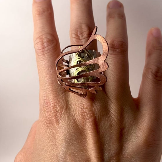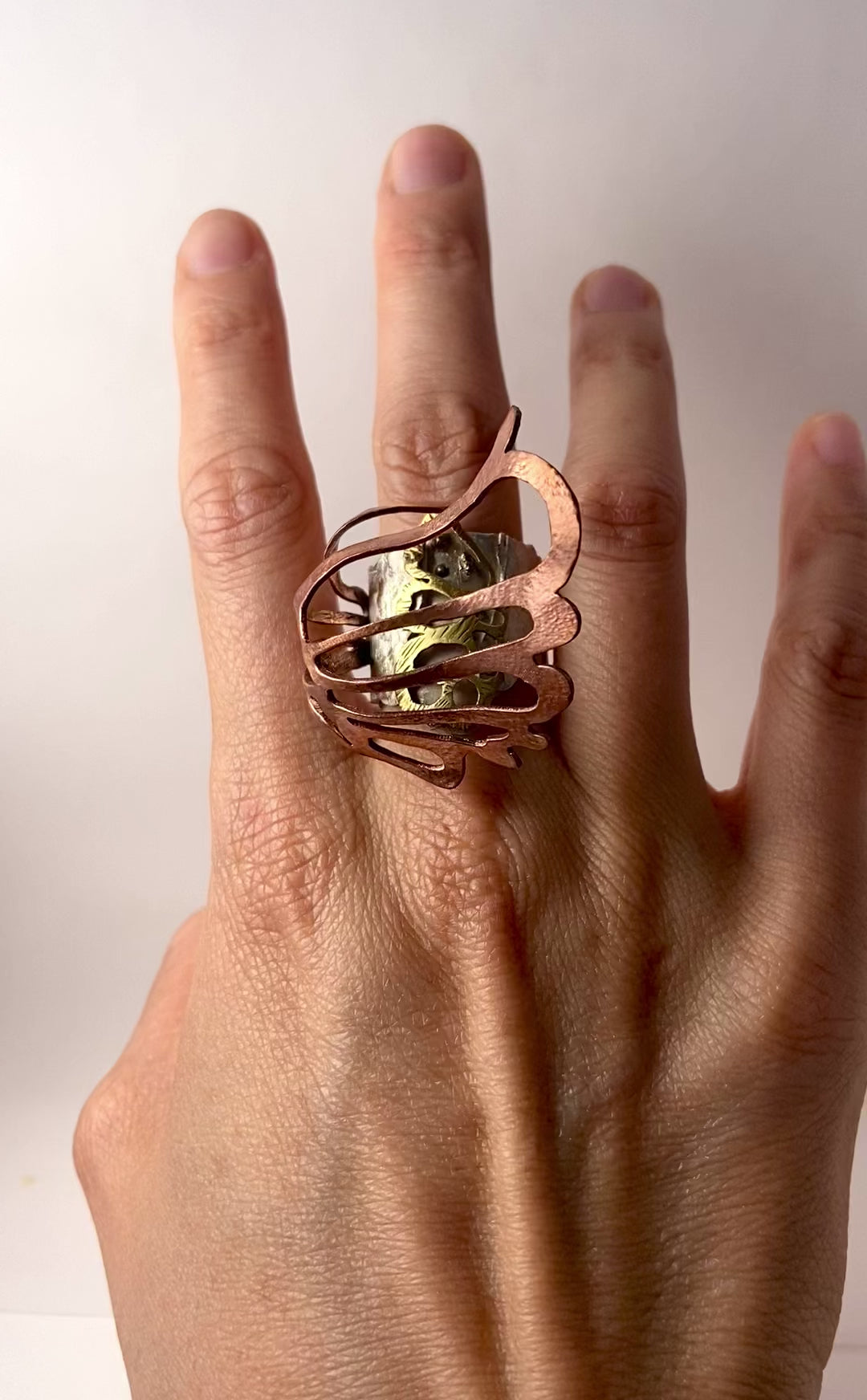 Handmade Coral-Inspired Ring in Copper, Brass & Silver – Mixed Metal Jewelry