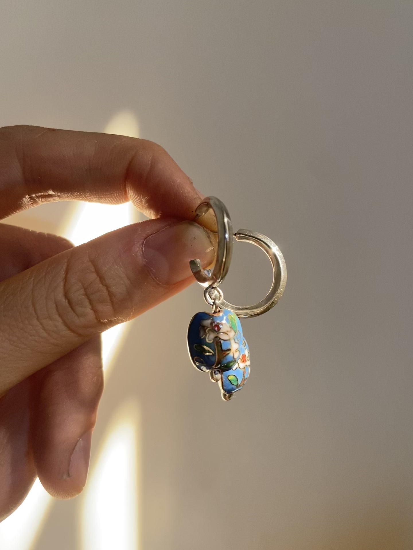 diameter of hoop: 1.8cm, length of bead drop from hoop: 1.5cm, width of bead: 1cm
