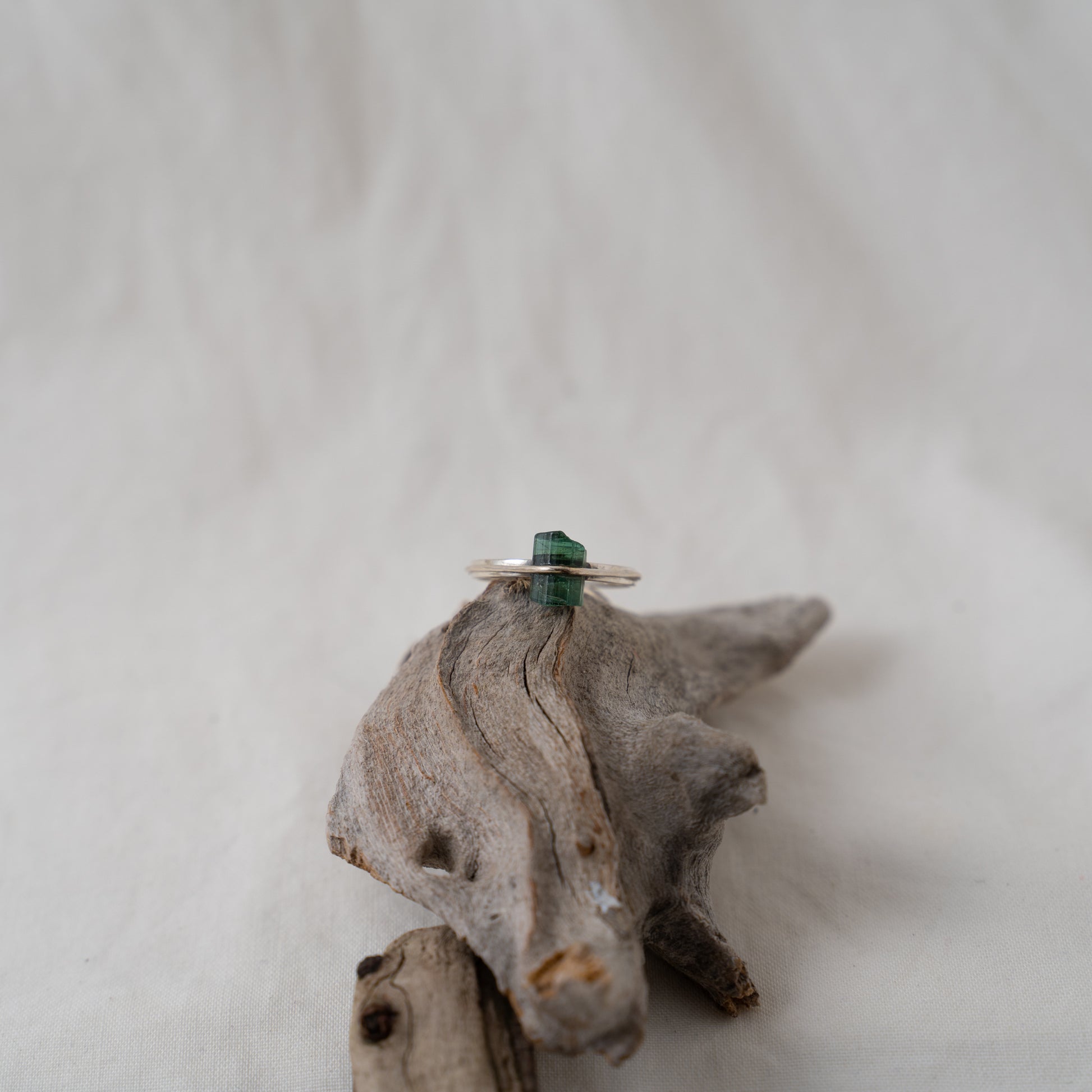 One of the most popular designs on my site, is this bohemian inspired raw green tourmaline silver ring.