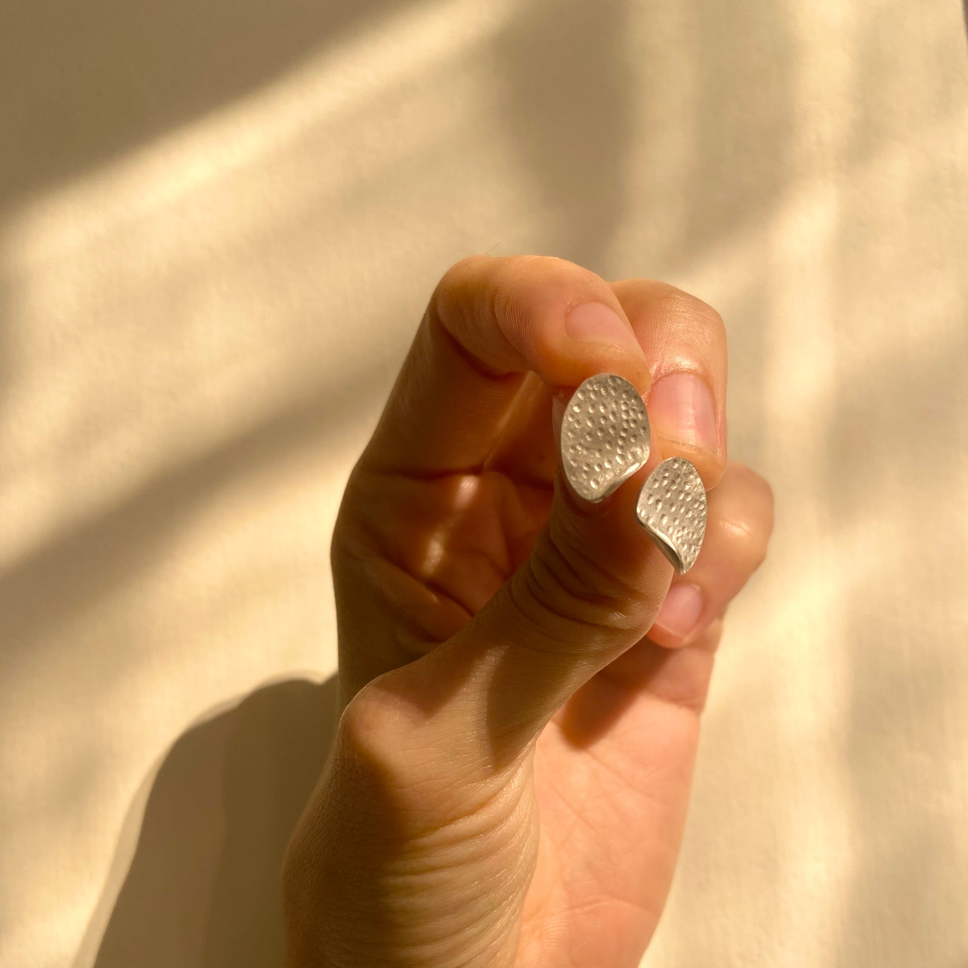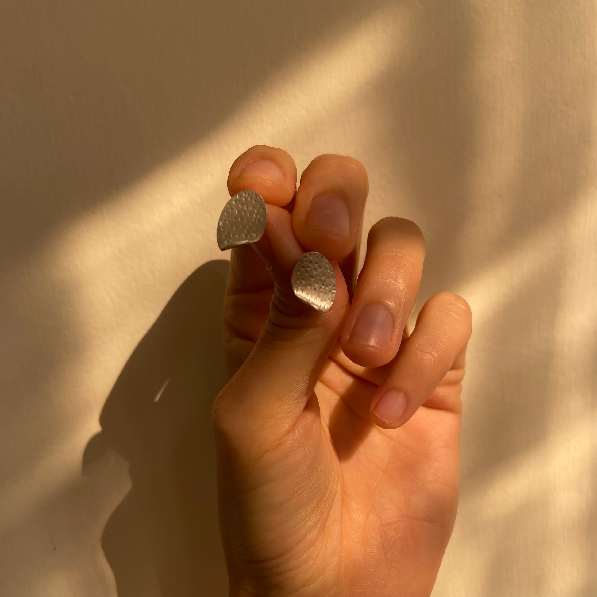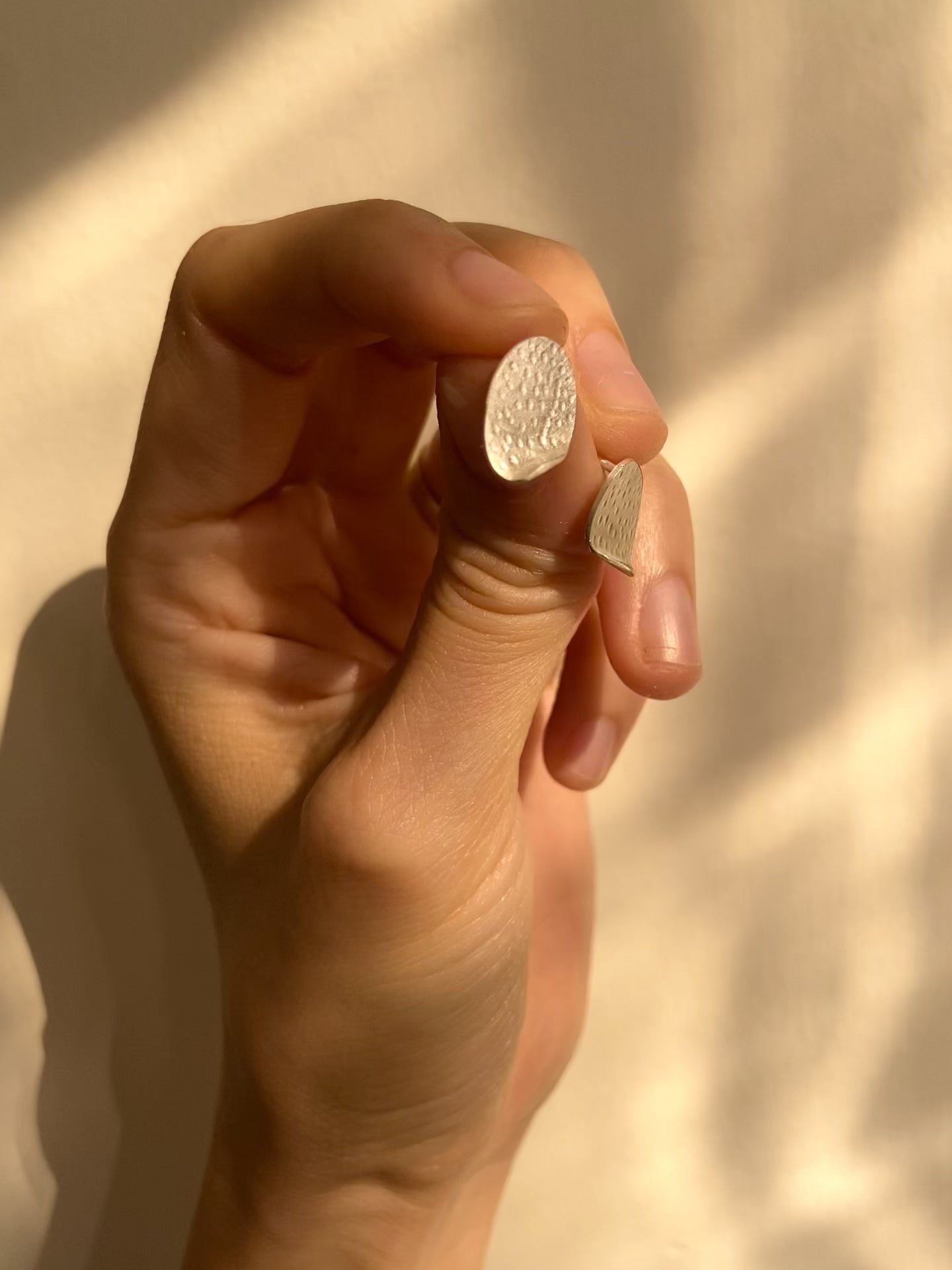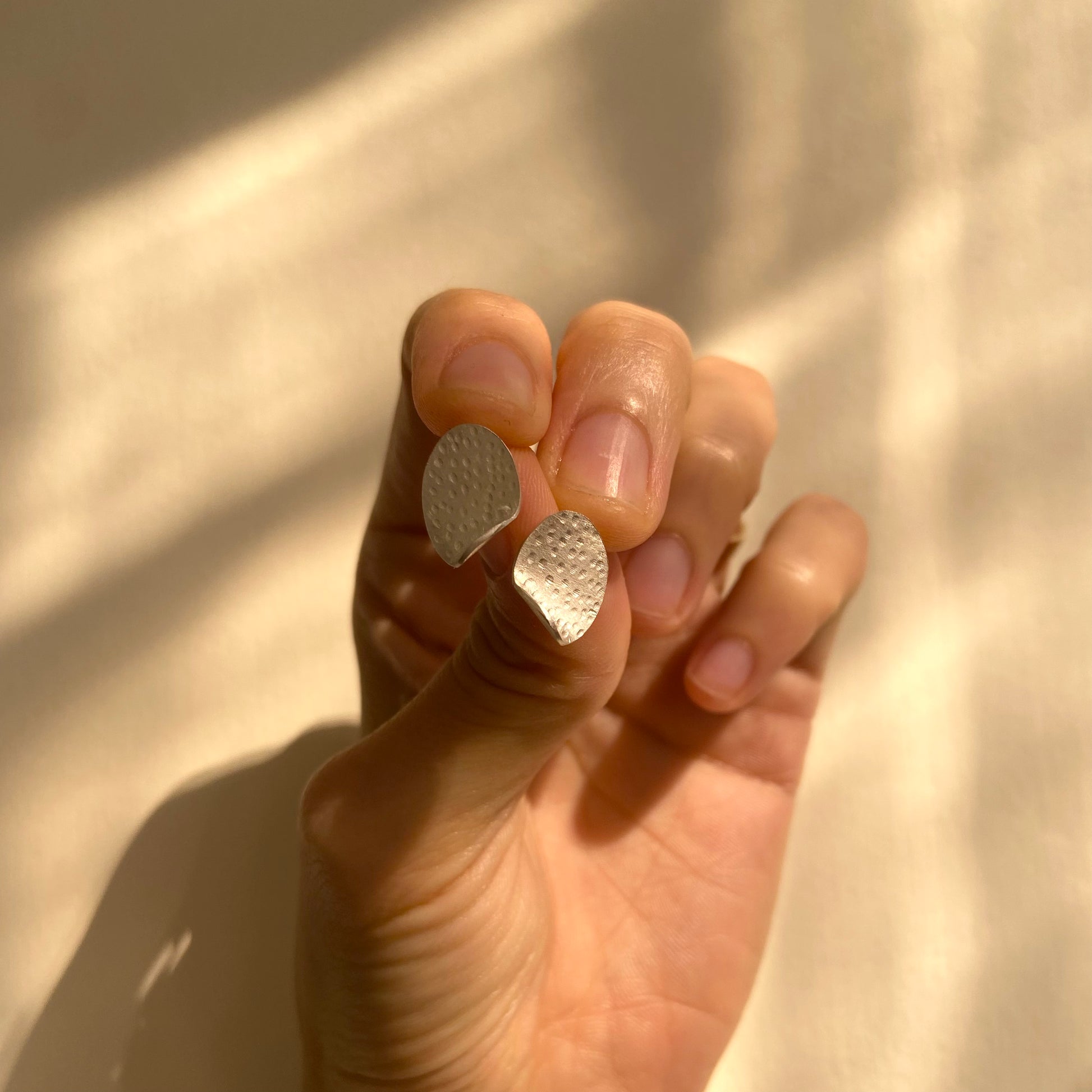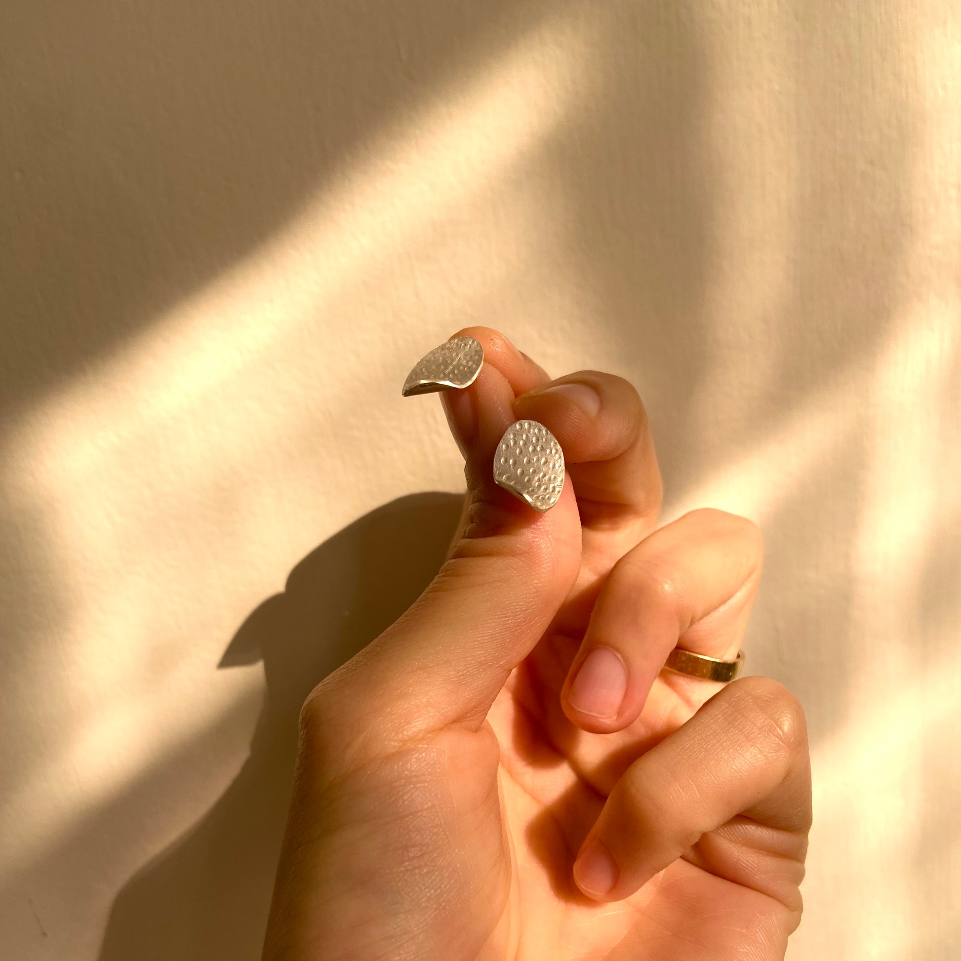These earrings are entirely repurposed from a silver ring that I didn’t finish making. They are made from sterling silver and handcrafted in my studio by me.
