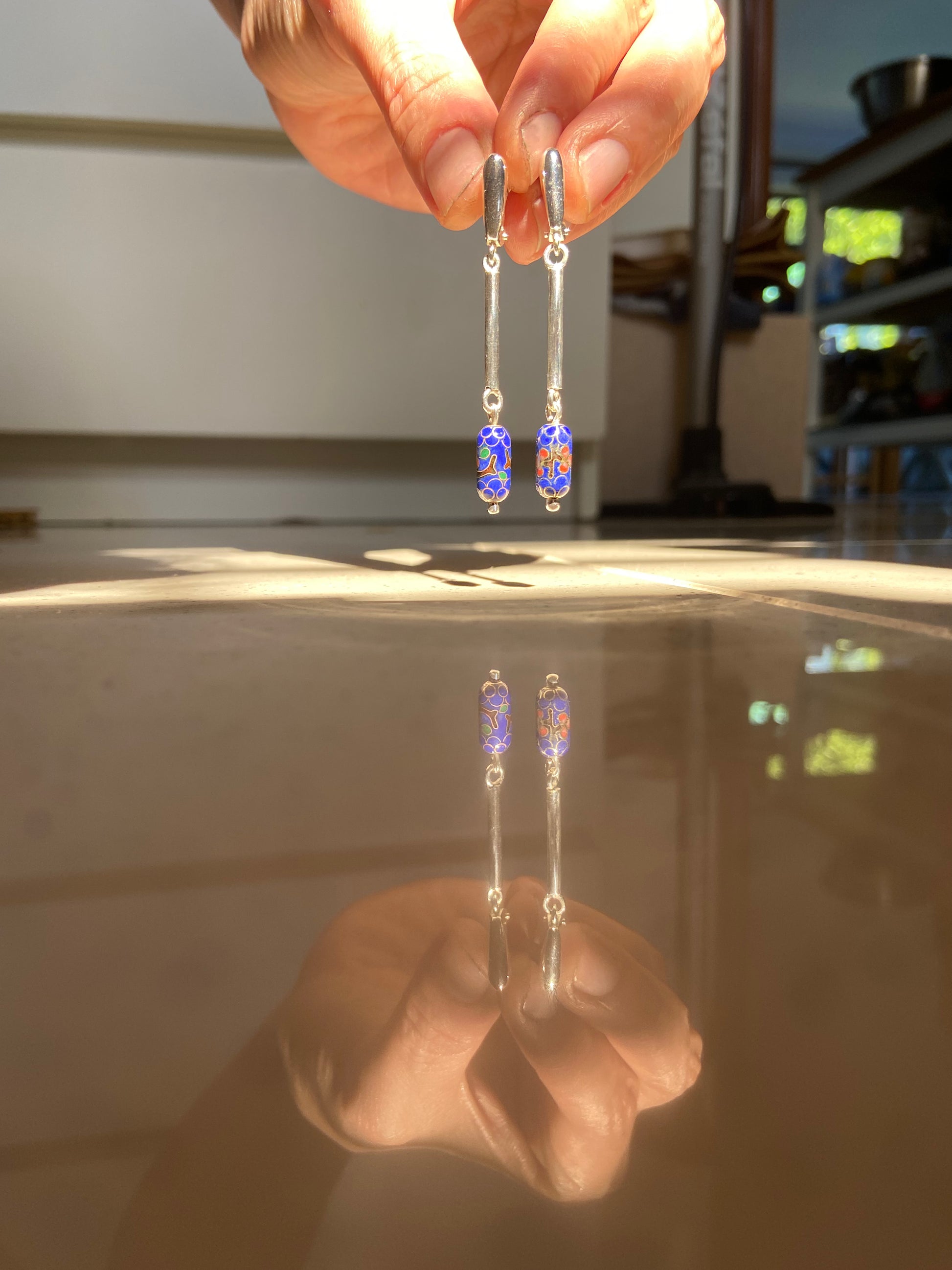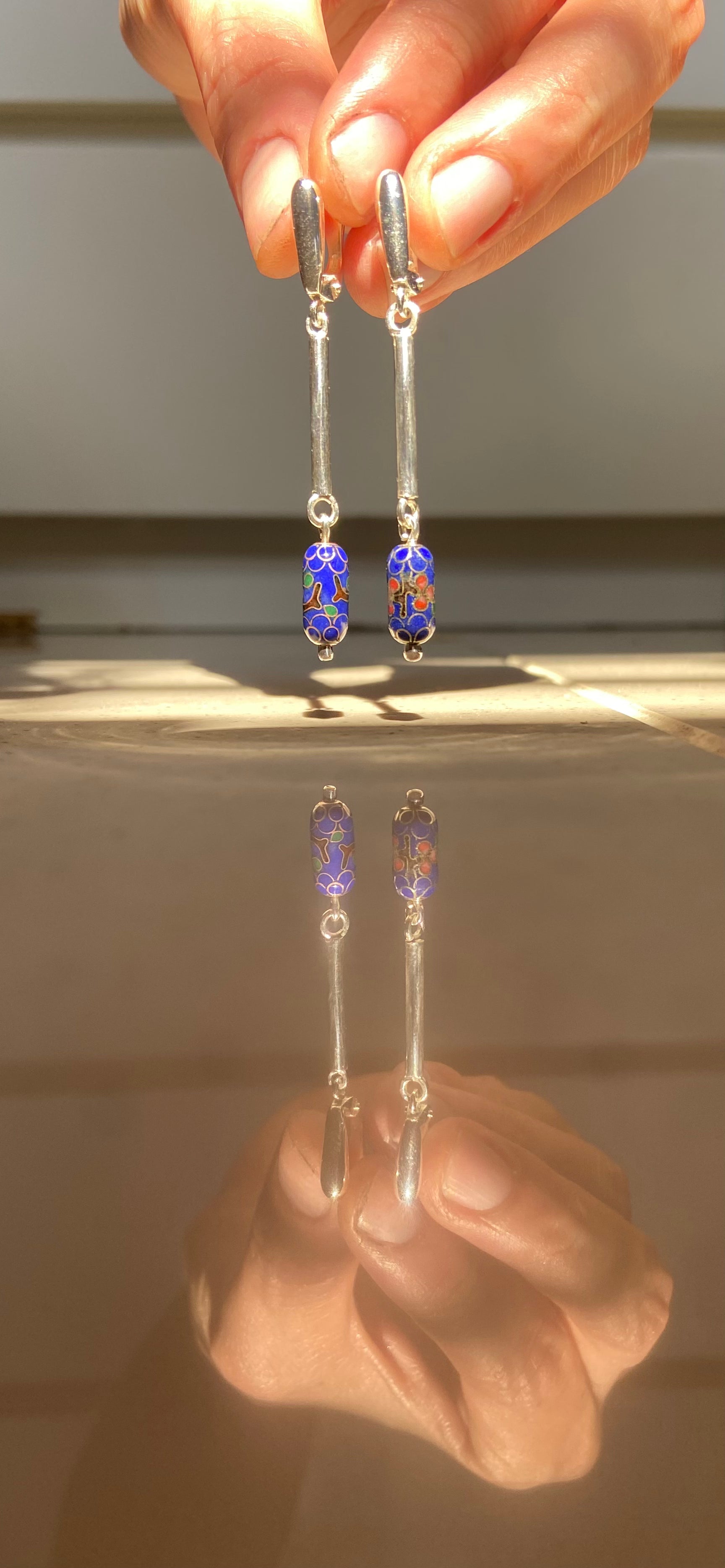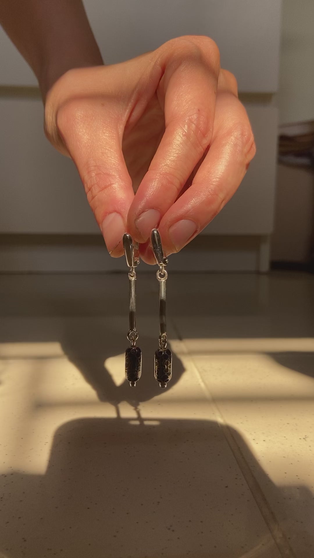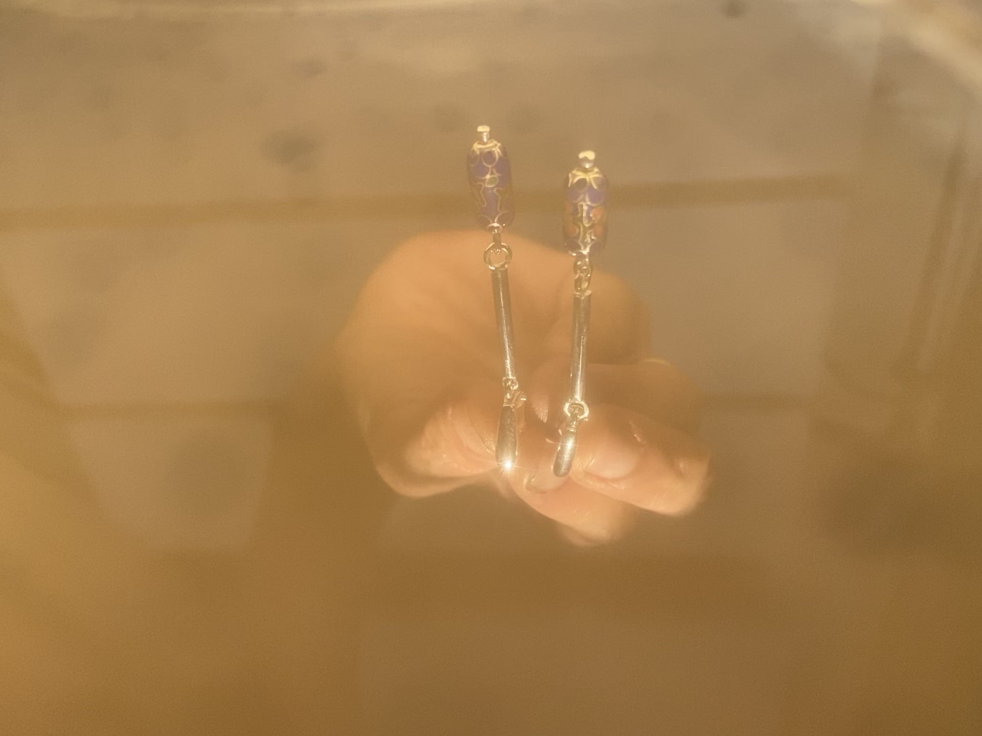 length of earring: 4cm, widest width (width of the bead): 0.5cm