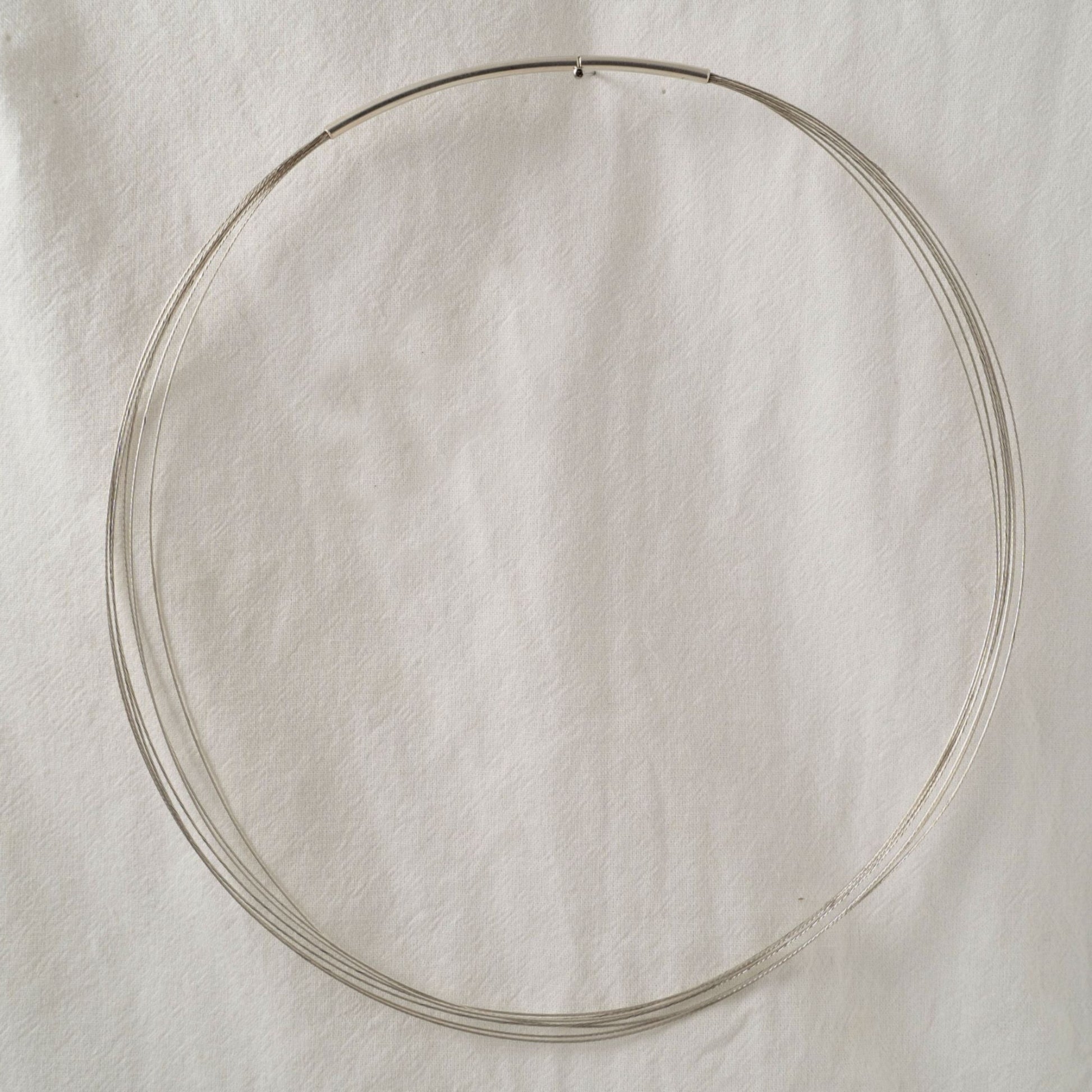 It consists of 7 silver individual threads and has an interesting, invisible, slide clasp.