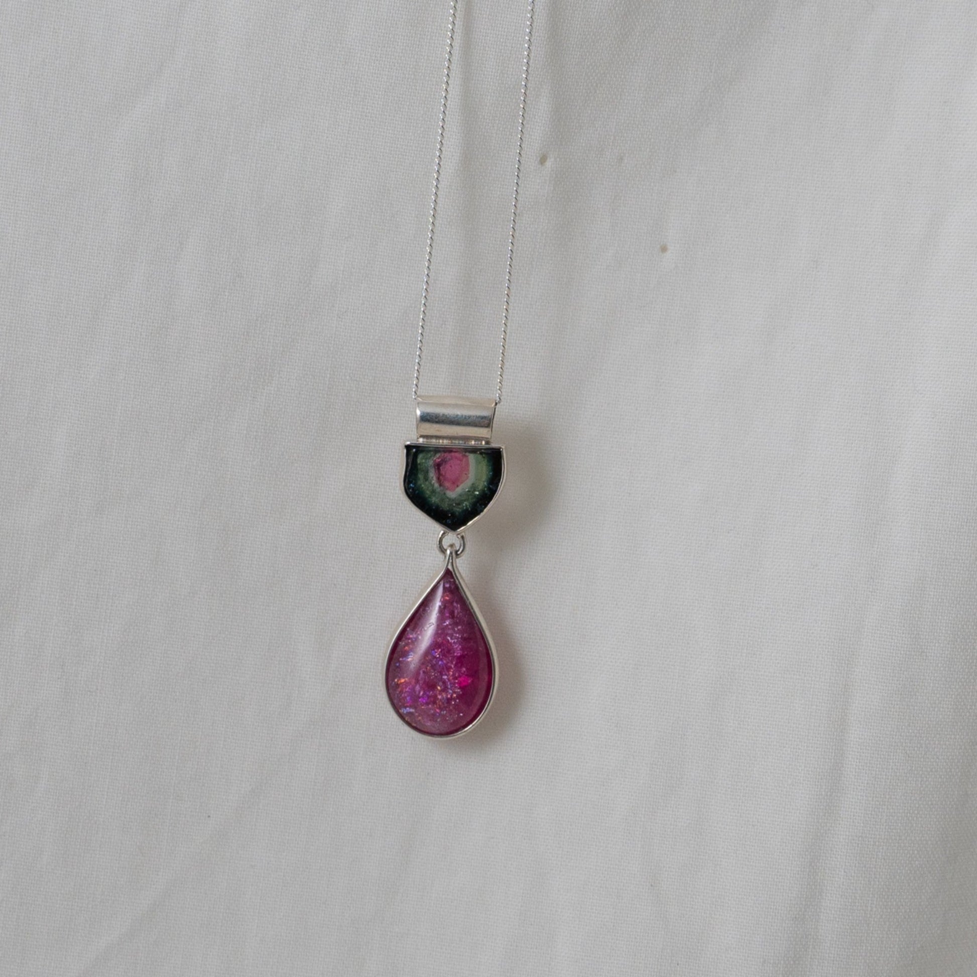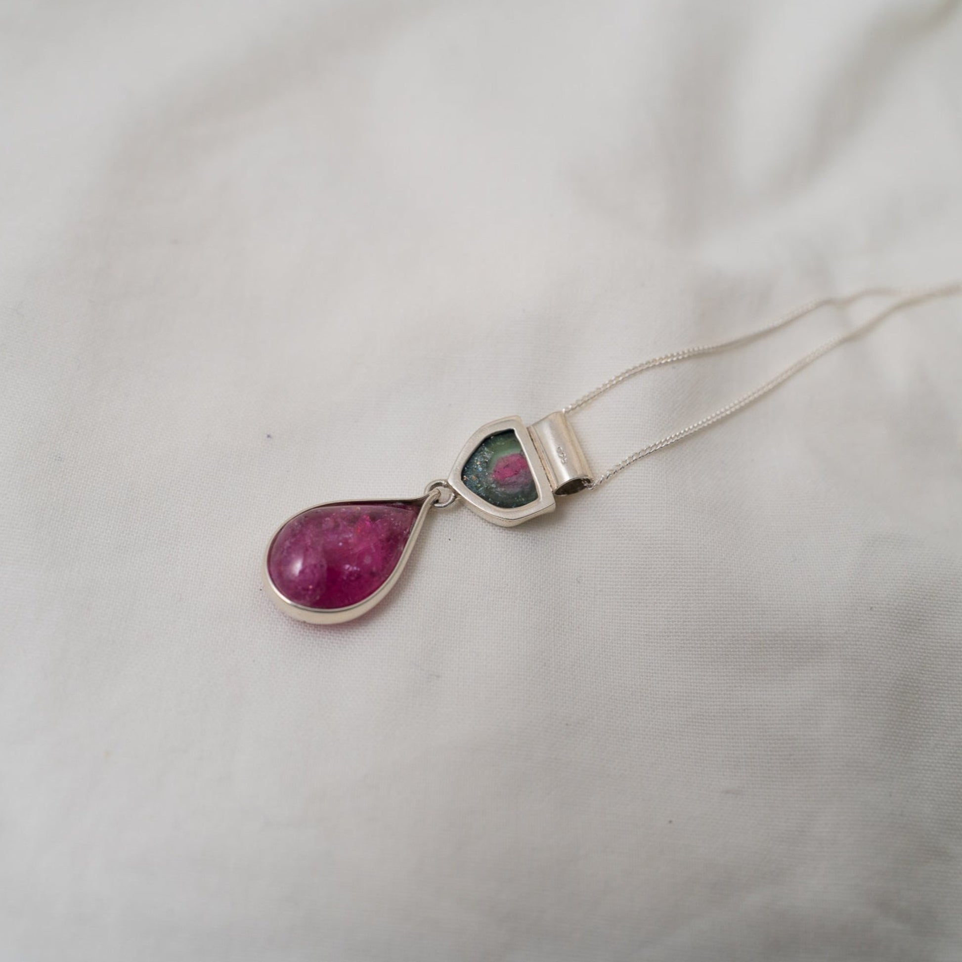 watermelon and rubellite tourmaline silver pendant